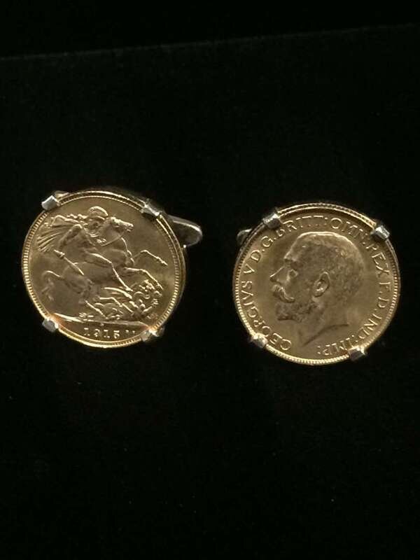 each set with a British sovereign; singed Minas.