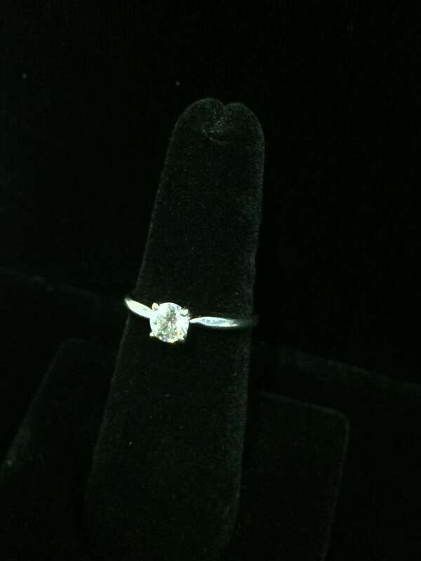 centering a round brilliant-cut diamond weighing approximately: 0.45 carat.