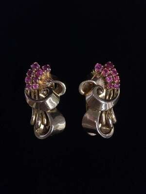 *A pair of Retro ruby and eighteen karat gold earrings