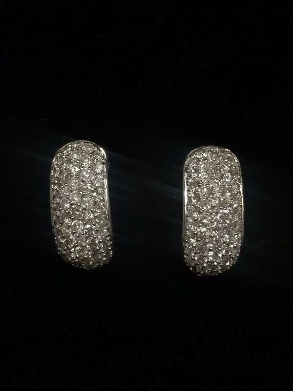 A pair of diamond and eighteen karat white gold earrings