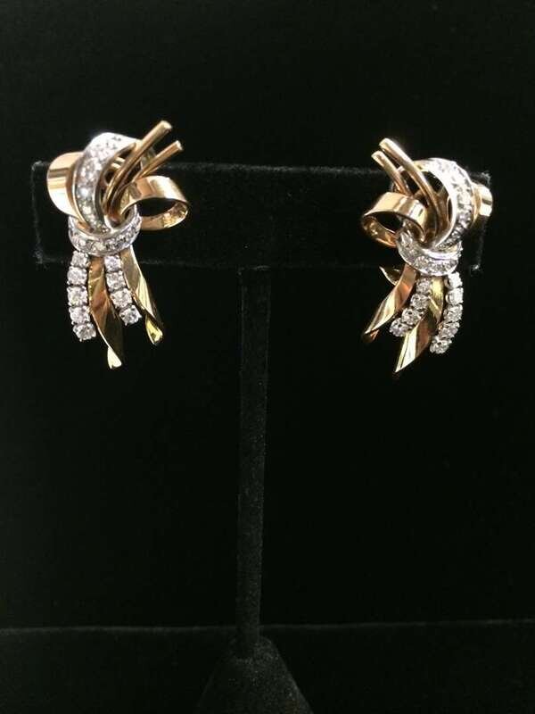 A pair of Retro diamond, platinum and eighteen karat rose ear-clips Paris