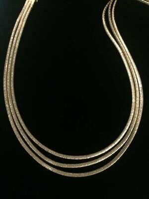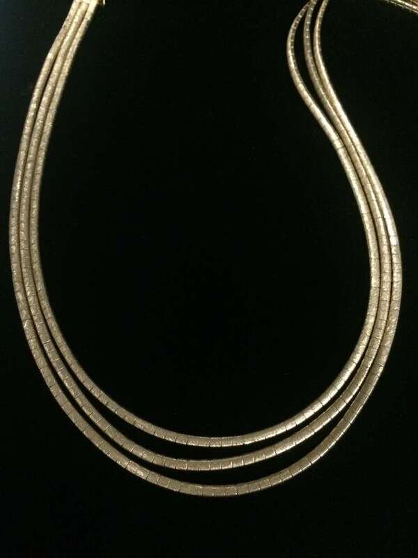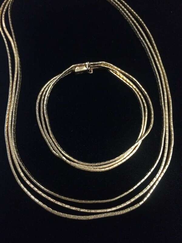consisting of a necklace and bracelet; each with three strands of brushed gold links and numbered A74.