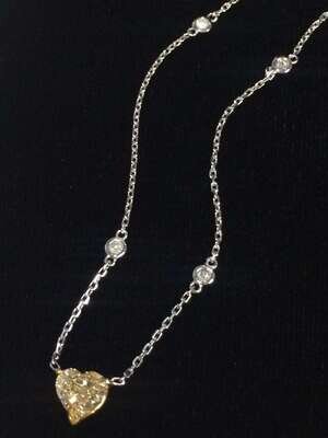 centering a heart-shaped yellow diamond weighing: 1.35 carats; on a full-cut diamonds by the yard style chain; total remaining diamond weight approximately: 0.30 carat.