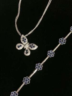 A collection of diamond, sapphire, rhodium and white gold jewelry