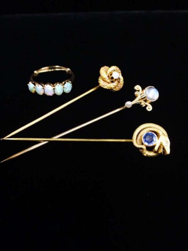 including ten, fourteen and eighteen karat gold; consisting of five rings, four stick pins and one pendant necklace. *Please note: only select items shown in image.