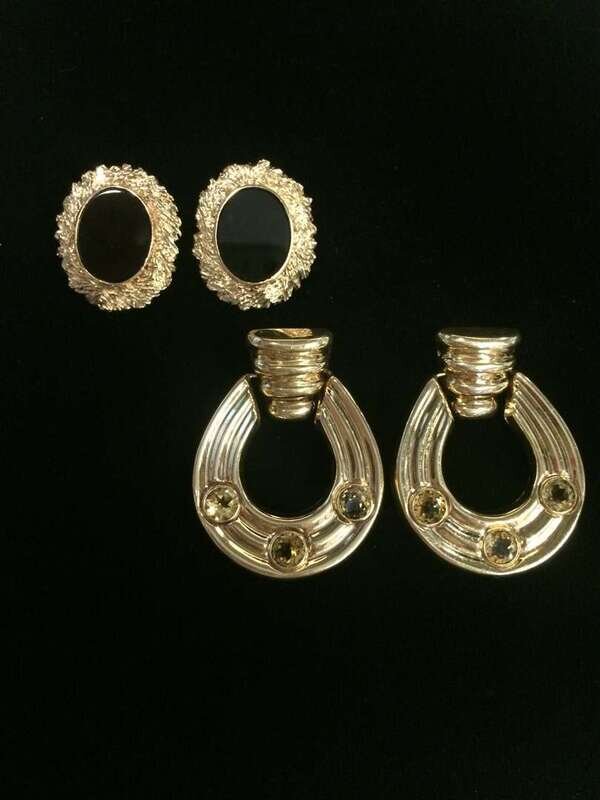 A collection of four pairs of gem-set and fourteen karat gold earrings