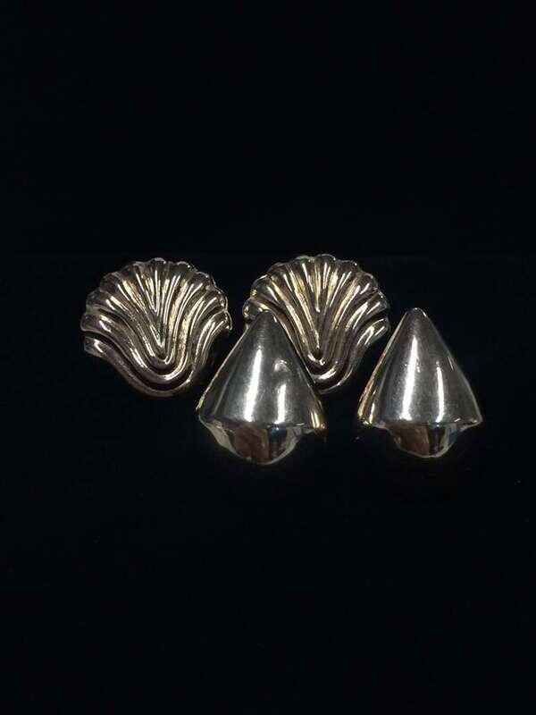 A collection of four paris of fourteen karat gold earrings