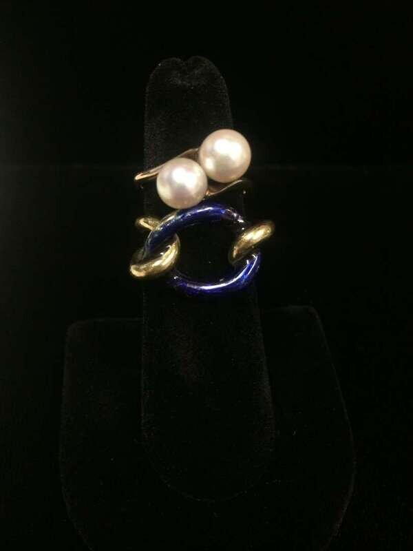 A collection of cultured pearl, enamel, lapis lazuli, seed pearl, platinum and gold jewelry