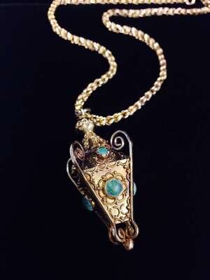 Gross weight: 19.0 dwt.; Necklace length: 17.5 in.; Pendant length: 2 in.