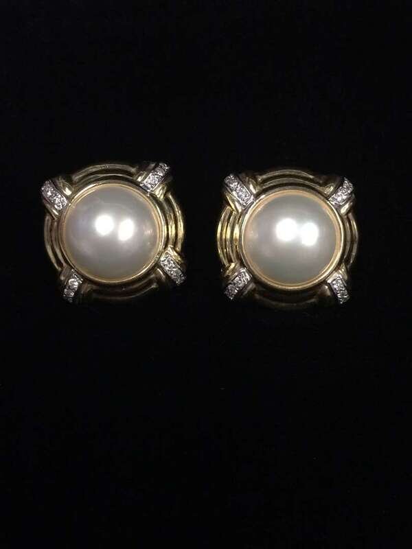 A pair of mabé pearl, diamond and eighteen karat gold earrings