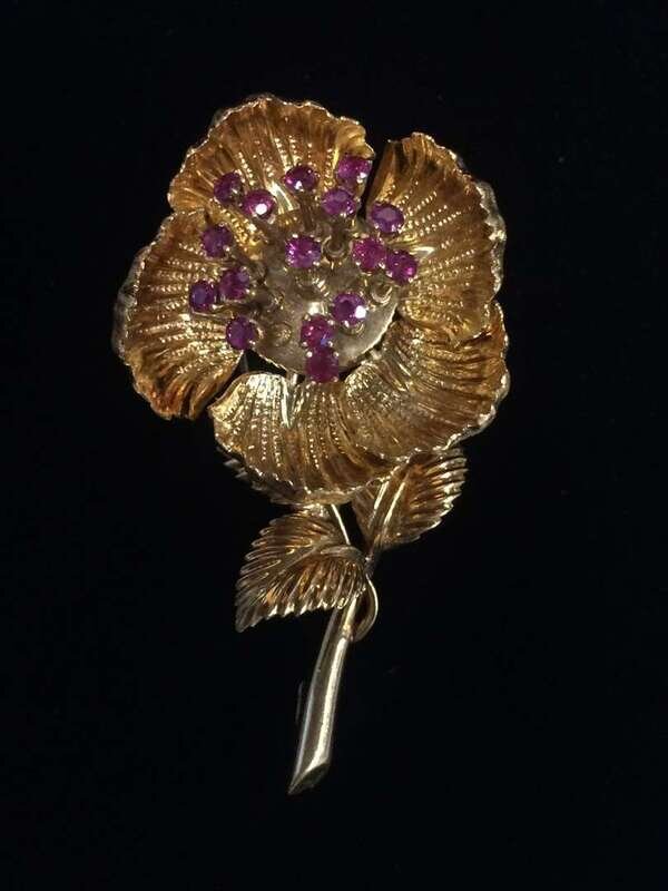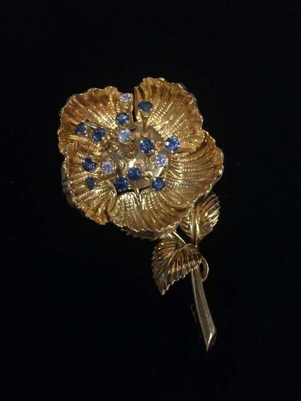 *A diamond, gem-set and eighteen karat gold brooch Italy