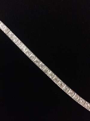 An Art Deco diamond, fourteen karat white gold and platinum line bracelet
