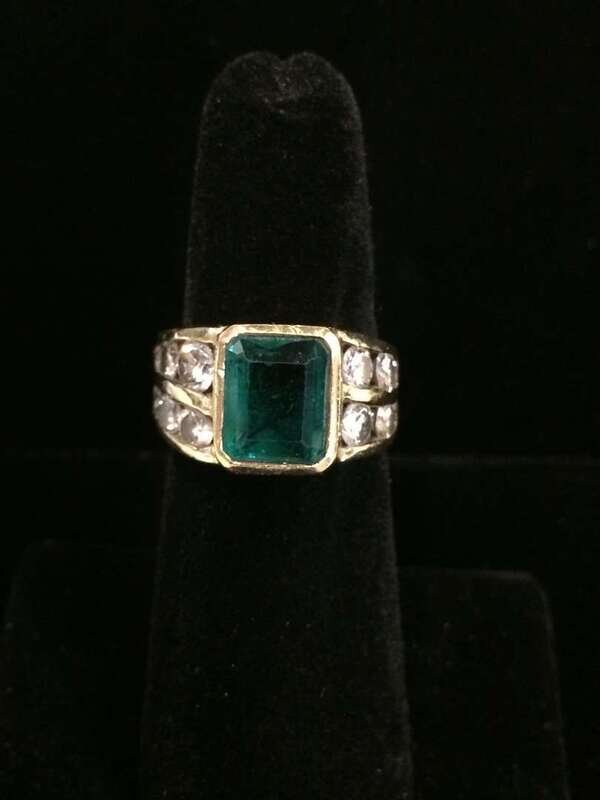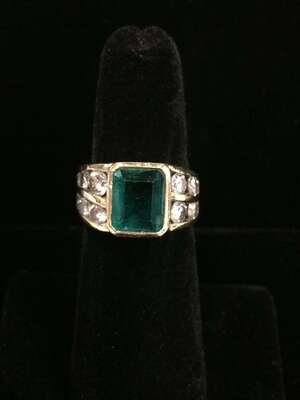 An emerald, diamond and eighteen karat gold ring