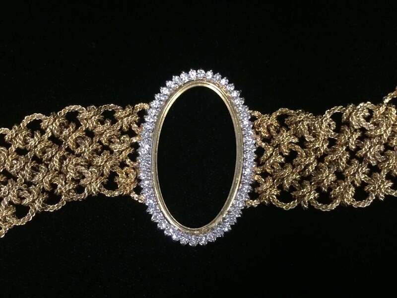 converted from a watch, with a full-cut diamond bezel; total diamond weight approximately: 1.55 carats.