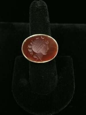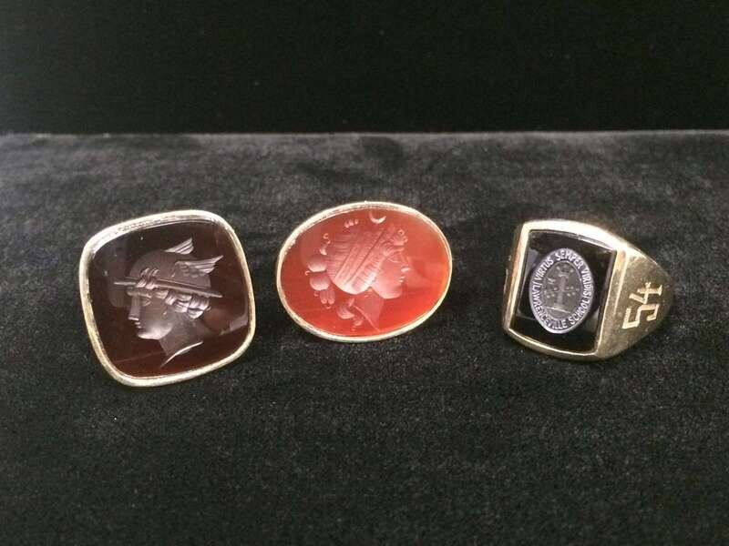A collection of three hardstone intaglio and gold rings