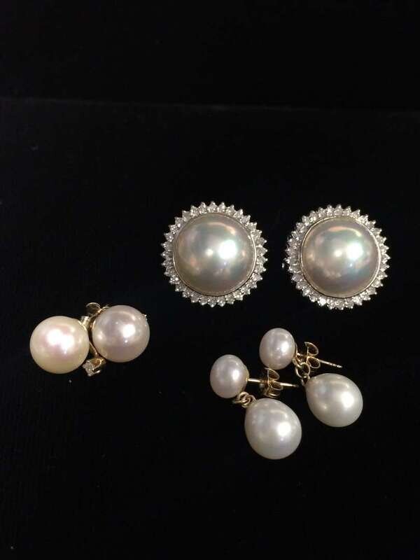 one pair of mabé pearls in single-cut diamond surrounds and one with full-cut diamond accents. *Please note: only select items shown in image.