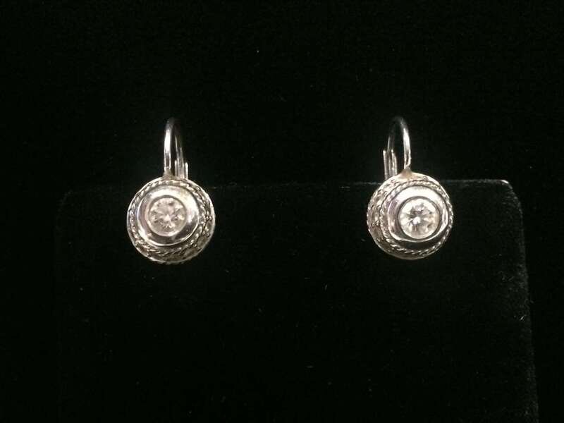 each centering a round brilliant-cut diamond and accented by full-cut diamonds; total diamond weight approximately: 1.00 carat; maker's mark for Penny Preville and accompanied by certificate of authenticity.