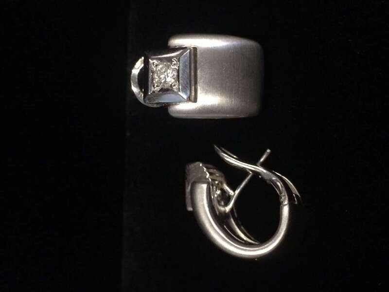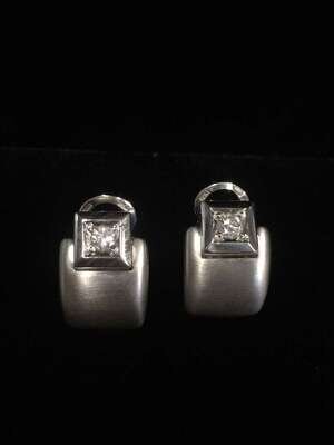 brushed white gold half hoops set with a full-cut diamond: total diamond weight approximately: 0.40 carat; Italian assay marks.