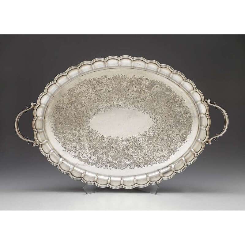 George VI silver twin-handled tray Barker Brothers Silver Ltd., Birmingham, 1937-38