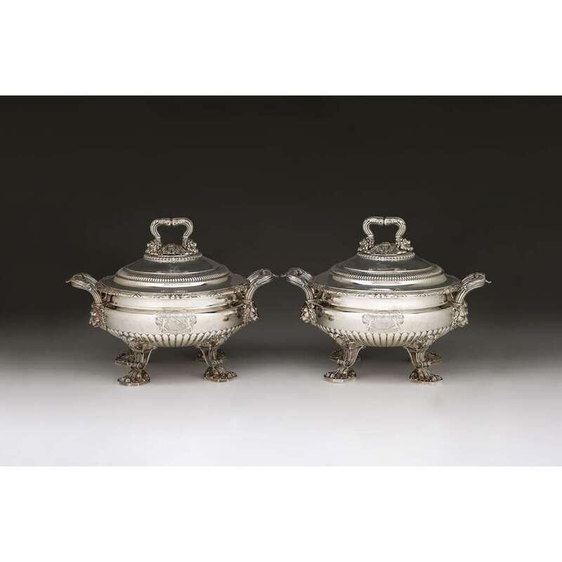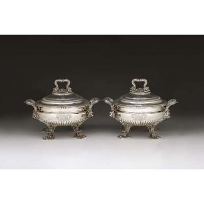 Fine pair of Regency silver covered soup tureens with liners Paul Storr, London, 1811-12