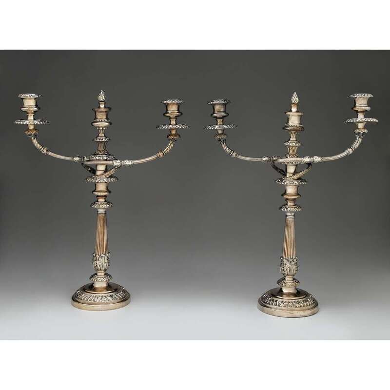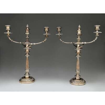 Pair of Sheffield silver-plated three-light candelabra Matthew Boulton, early 19th century