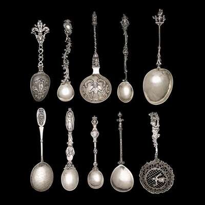 Collection of ten German silver figural spoons mostly Hanau, last quarter 19th century