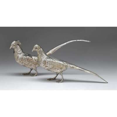 Pair of German silver pheasant table ornaments late 19th/early 20th century