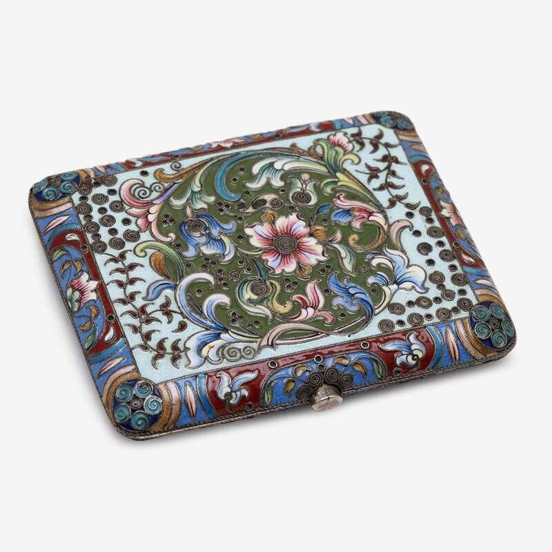 Russian silver and cloisonné enamel cigarette case Nikolai Zverev, Moscow, 1908-26