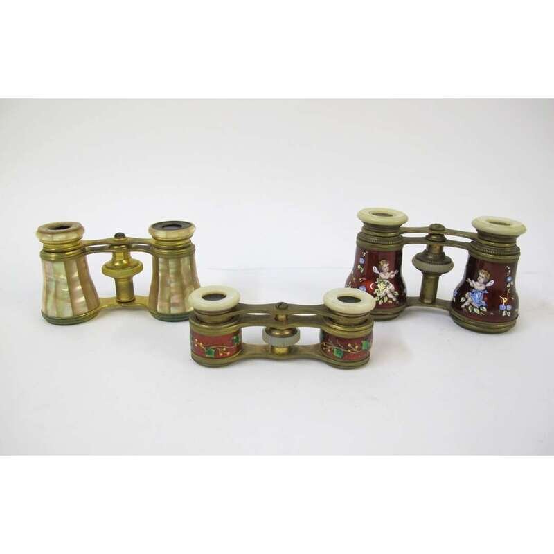 The first of gilt-brass and mother-of-pearl in original box, by Lemarie Paris; the others enameled. (3).