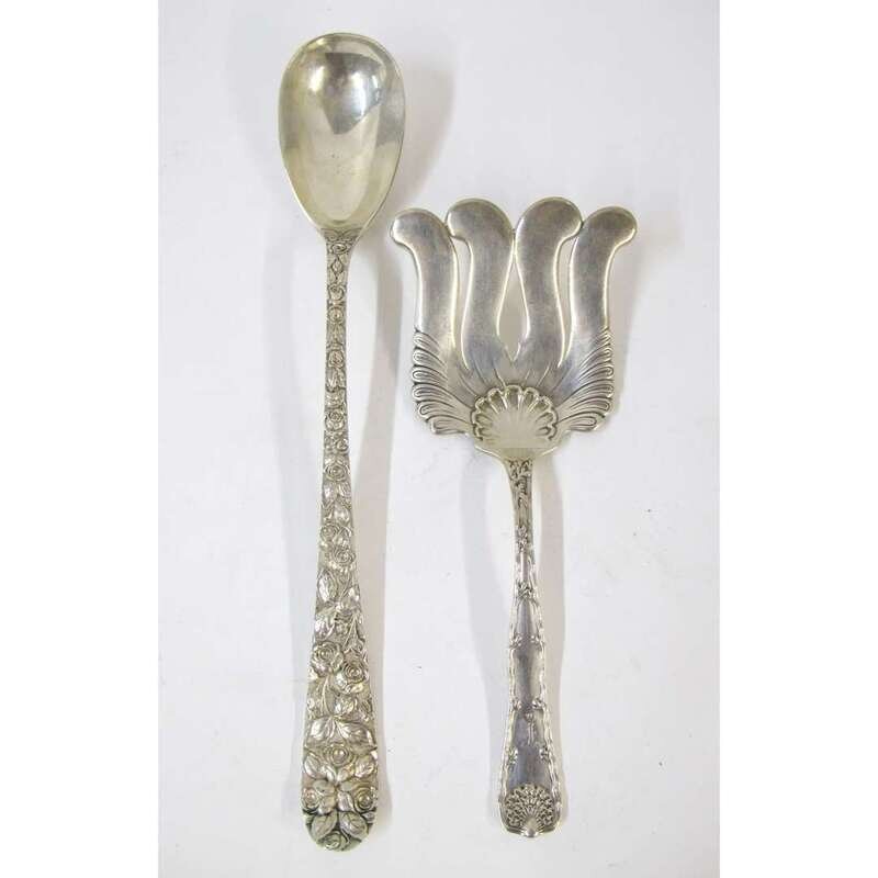 Monogramed; together with a large serving spoon by Baltimore Silversmiths Mfg. Co. in the 'Baltimore Rose' pattern. (2).