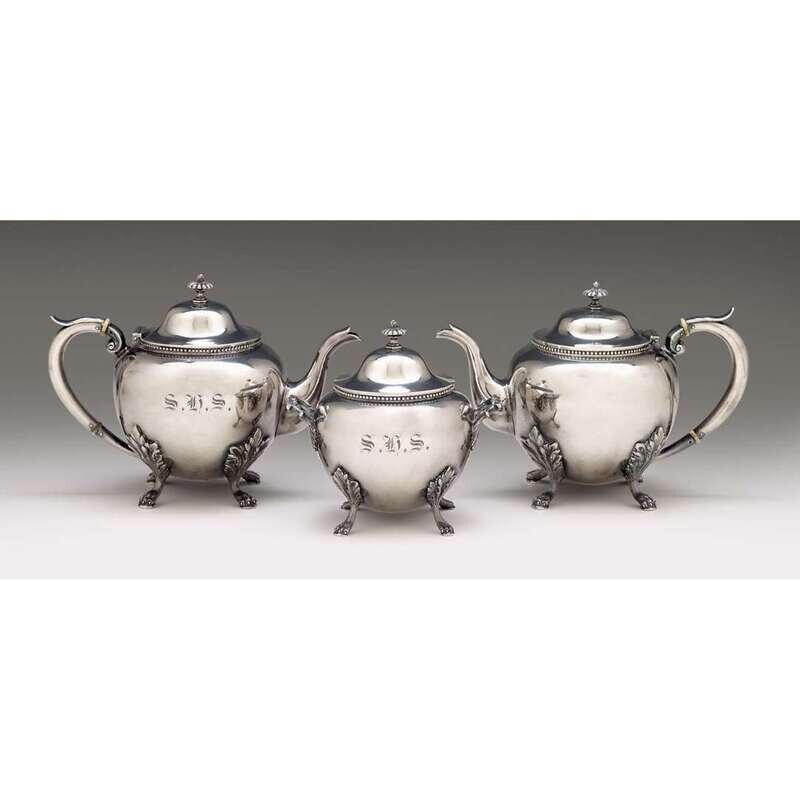 Coin silver three-piece tea service Shreve, Brown & Co., Boston, MA, 1857-60