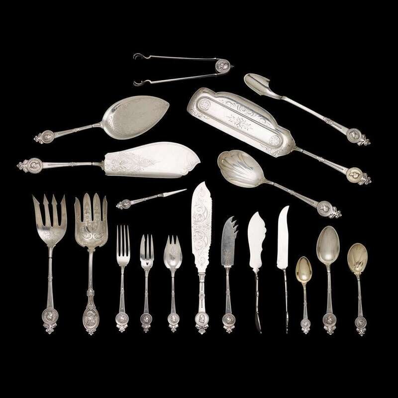 Sterling silver 'Medallion' pattern partial flatware service George Wilkinson for Gorham Mfg. Co., Providence, RI, 1864