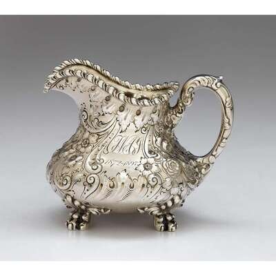 Sterling silver creamer Dominick & Haff, New York, NY, 1870, retailed by Bailey, Banks, &