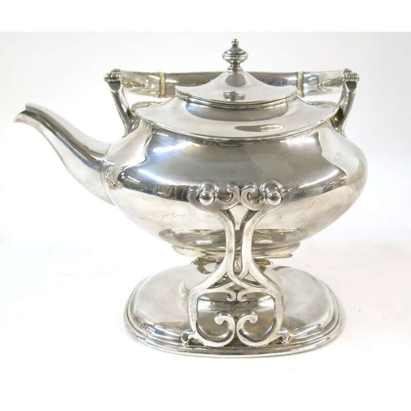 Sterling silver hot water kettle on stand J.B. & S.M. Knowles, Providence, RI, 1875-1905