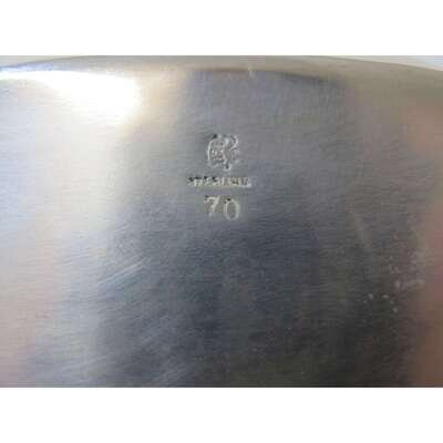 Oval form with urn-form finial raised conforming stand, monogrammed.