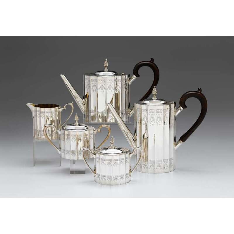 Five-piece sterling silver tea and coffee service Lunt Silversmiths, Greenfield, MA, 20th century