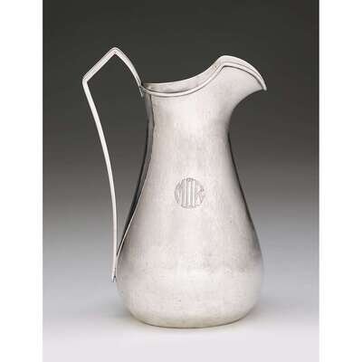 Elongated baluster form with angular handle, monogrammed "MOR," model U76L.