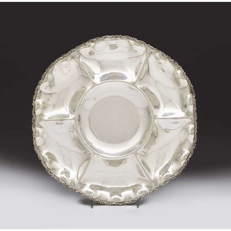 Mexican silver serving dish Plateria Emma, Mexico City, mid 20th century