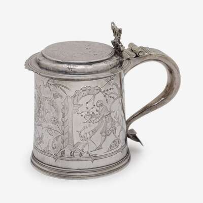 Fine William and Mary Chinoiserie silver tankard London, 1689-90, maker's mark YT