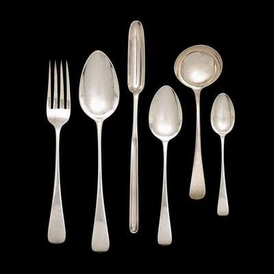 George III silver partial flatware service Peter & Ann Bateman, London, 1794-95