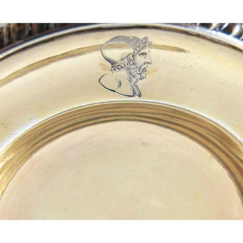 Circular with silver-gilt interior and gadrooned rim, engraved with profile portrait of a male. (8).