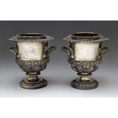 Pair of Sheffield silver-plated wine coolers probably Matthew Boulton, 19th century