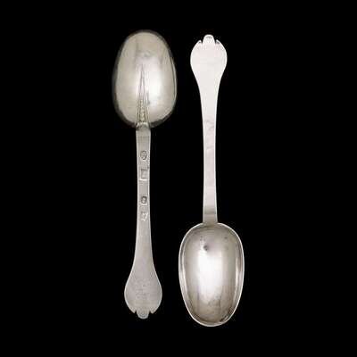 Fine pair of William III silver trefid spoons John Downes, London, 1698-99