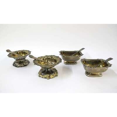 The first pair by Rebecca Emes & Edward Barnard I, London, 1809-10, the spoons later; the second by assaymaster Andrey Kovalsky, Moscow, 1846, with silver-plated spoons. (8).