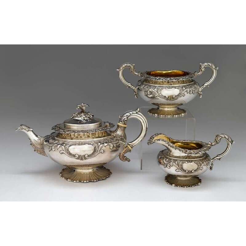 Three-piece William IV Scottish silver tea service Leonard Urquhart, Edinburgh, 1836-37
