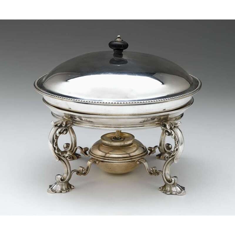 Victorian silver chafing dish on stand the stand and burner by R & S Garrard & Co., London, 1854-55