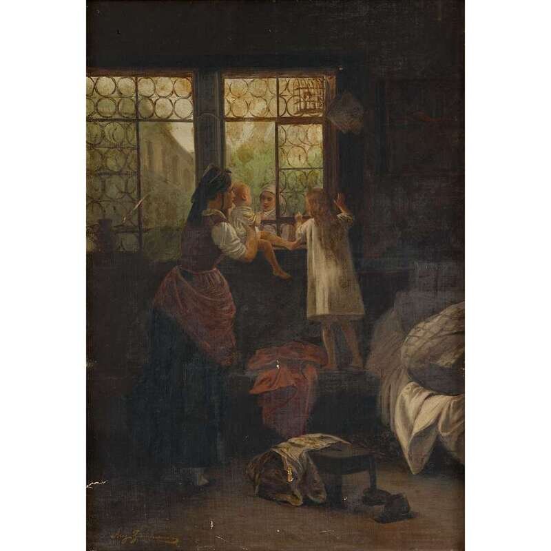 AUGUST ZIMMERMANN (GERMAN 19TH CENTURY) MATERNAL CARES