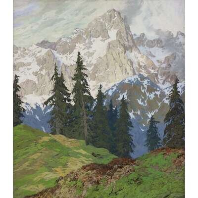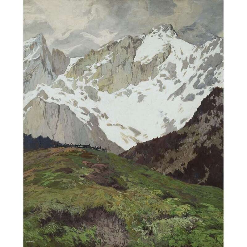 HUGO HODIENER (HODINA) (AUSTRIAN 1856-1945) MOUNTAINS IN SPRING; AND A COMPANION