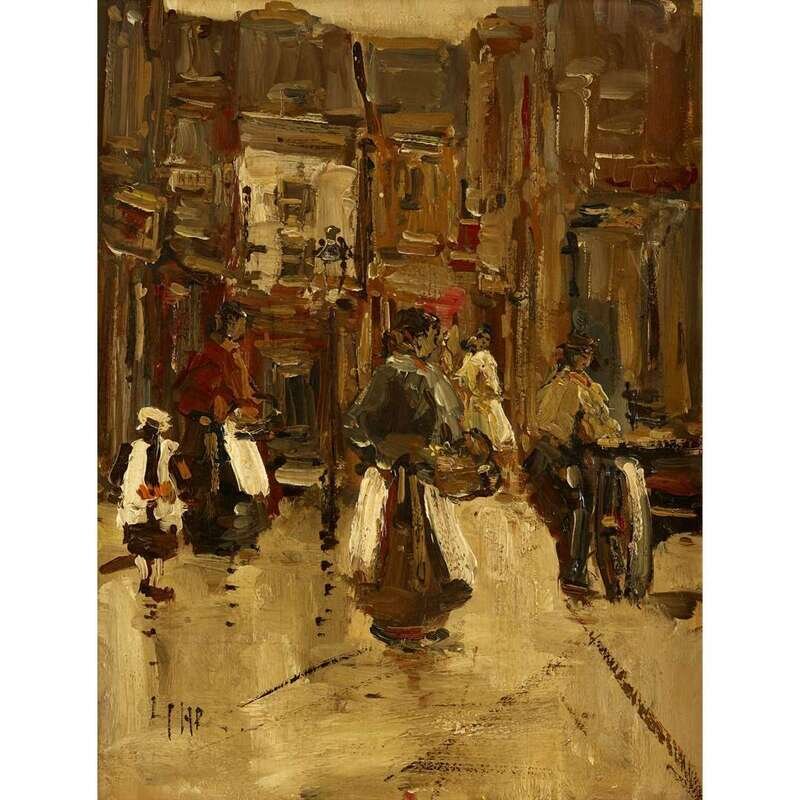 GEORGE HENDRIK BREITNER (DUTCH 1857-1923) DUTCH STREET WITH CART SELLER