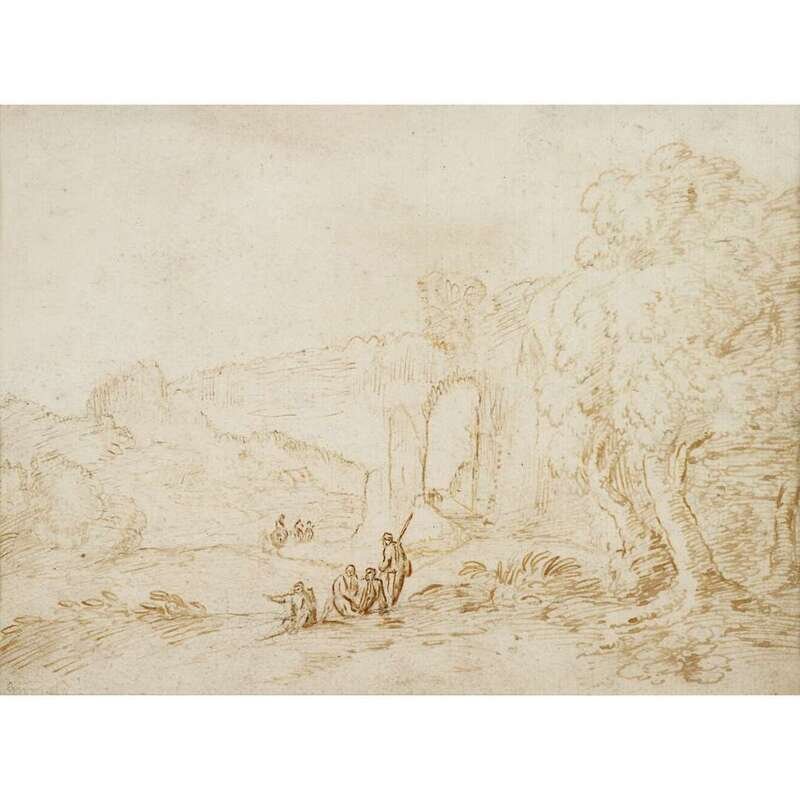 ATTRIBUTED TO JAN FRANS VAN BLOEMEN, CALLED L'ORIZZONTE (FLEMISH 1662-1749) TRAVELERS IN AN ITALIAN LANDSCAPE